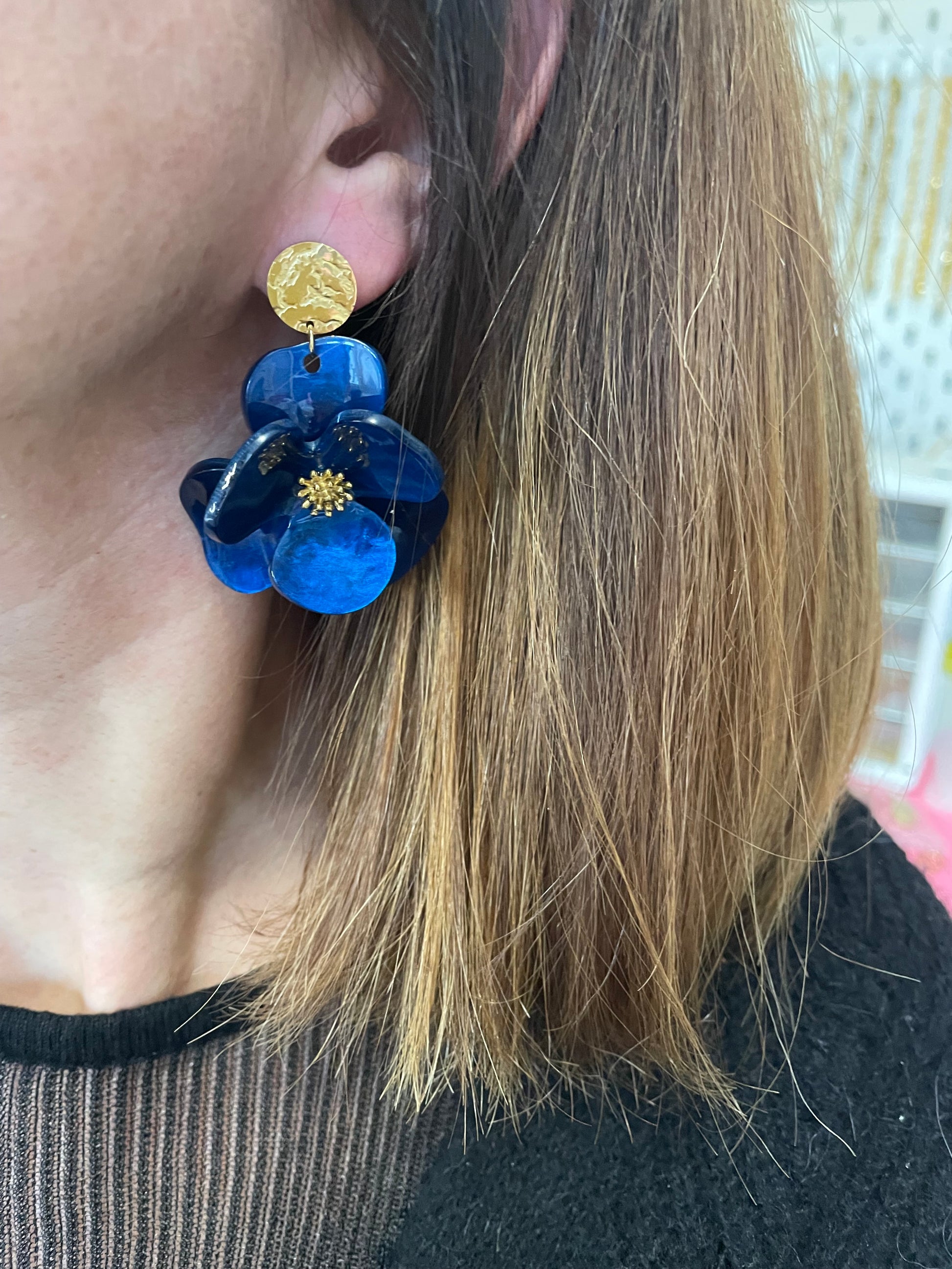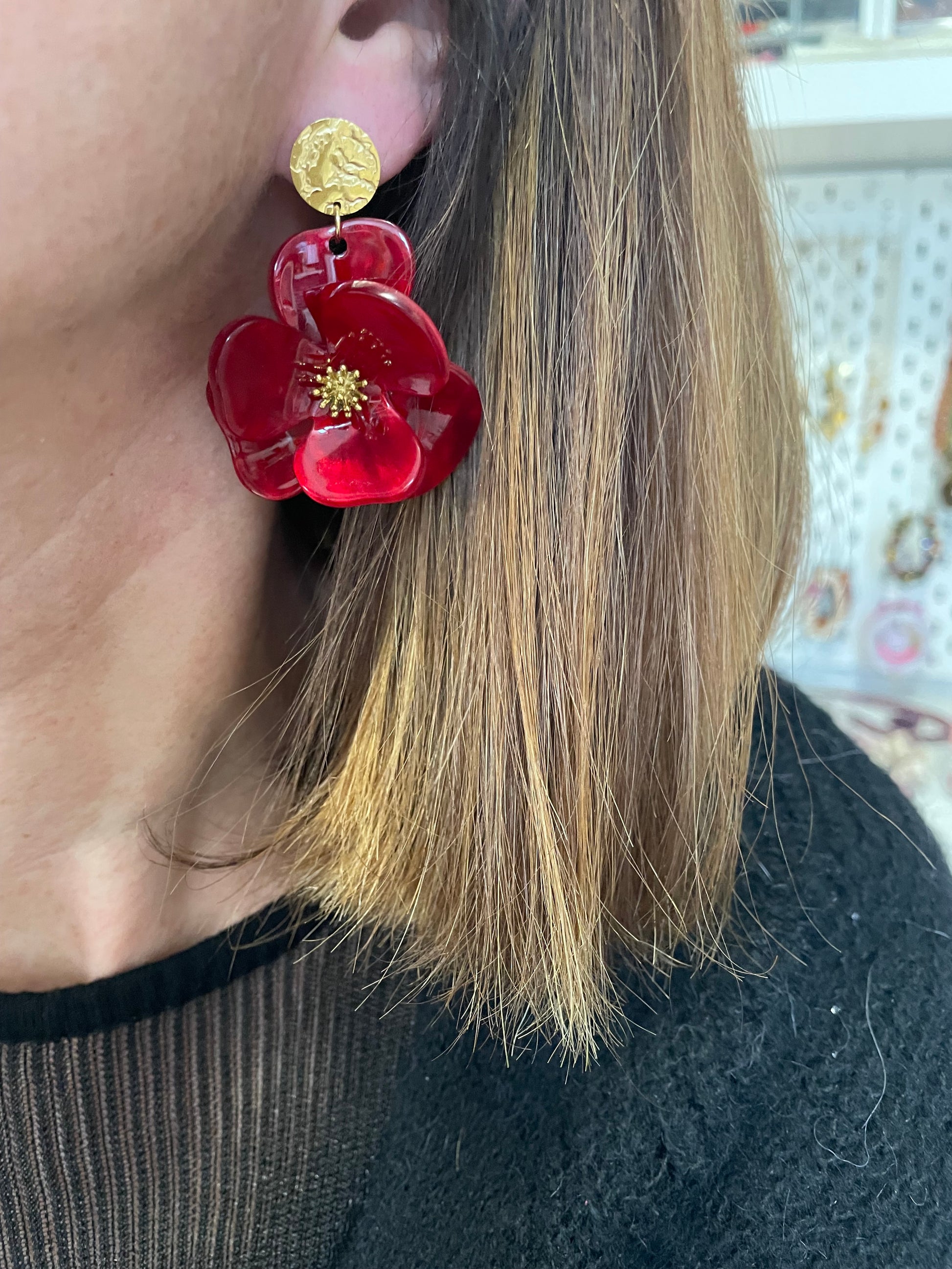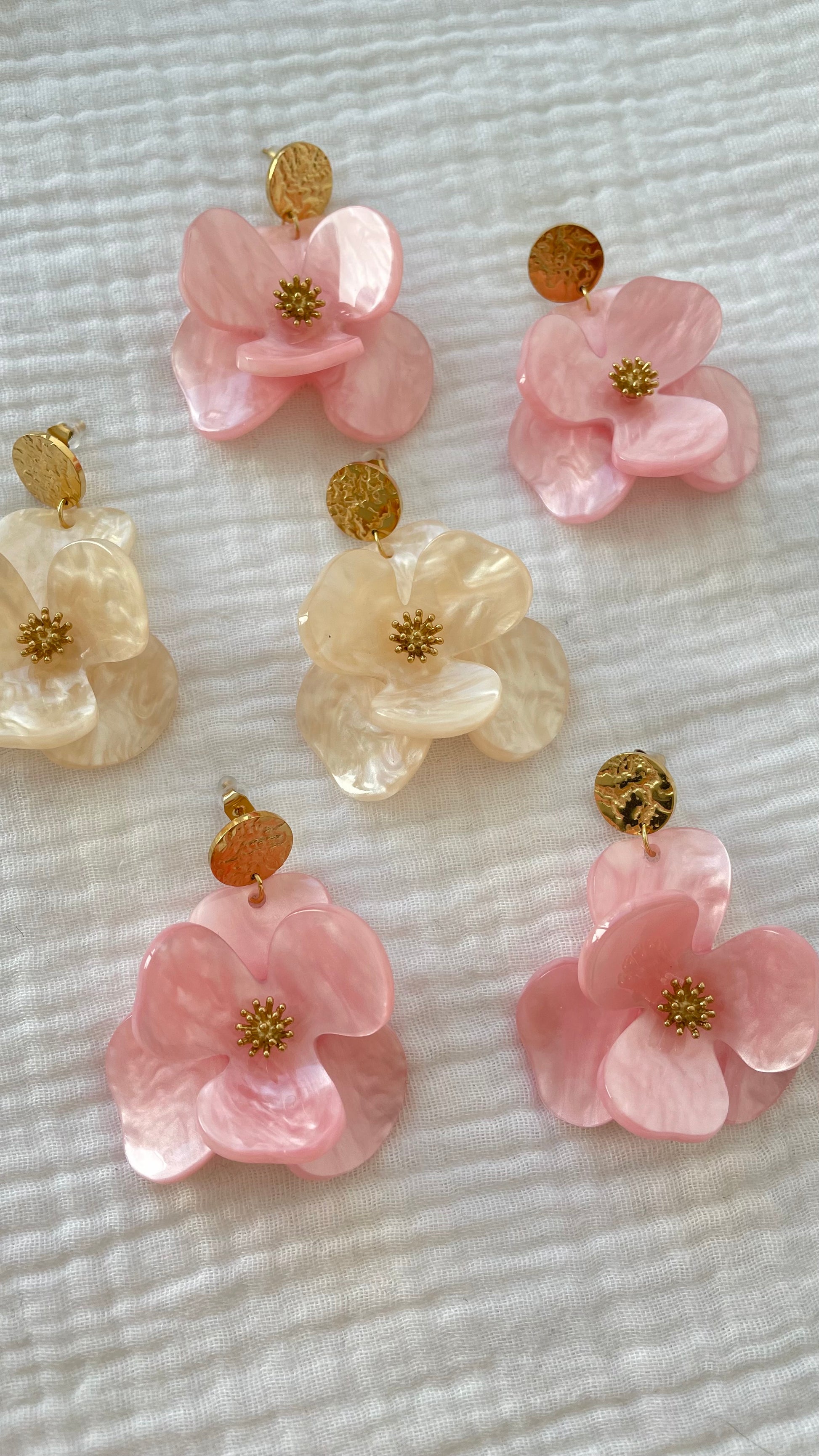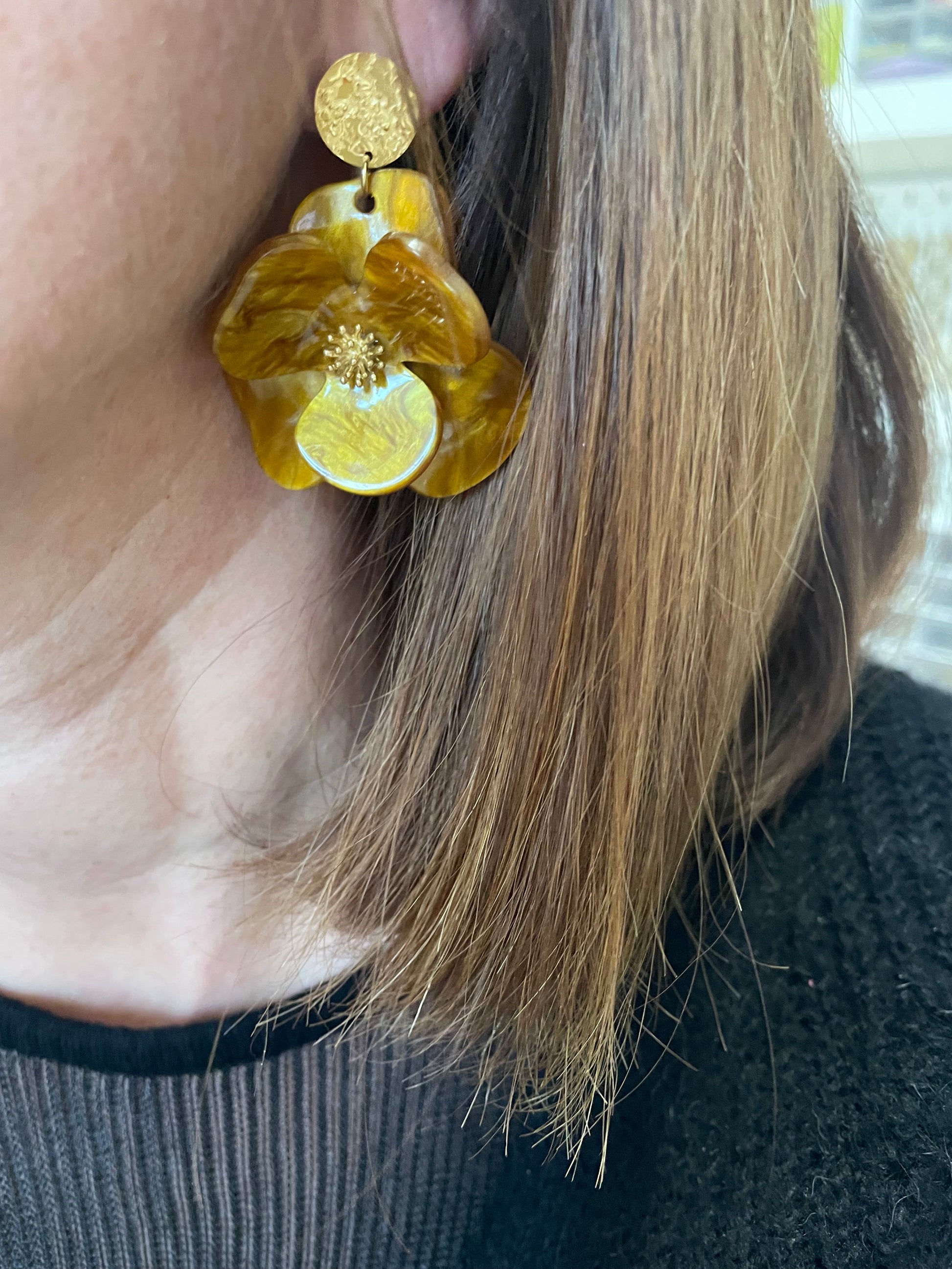 Maggie – Boucles d'oreilles Fleur Acrylique & Clou Doré Martelé