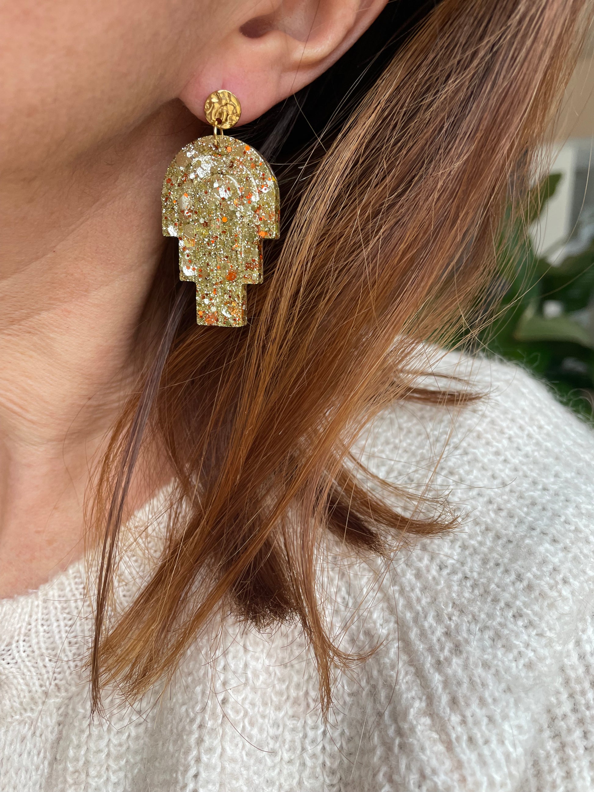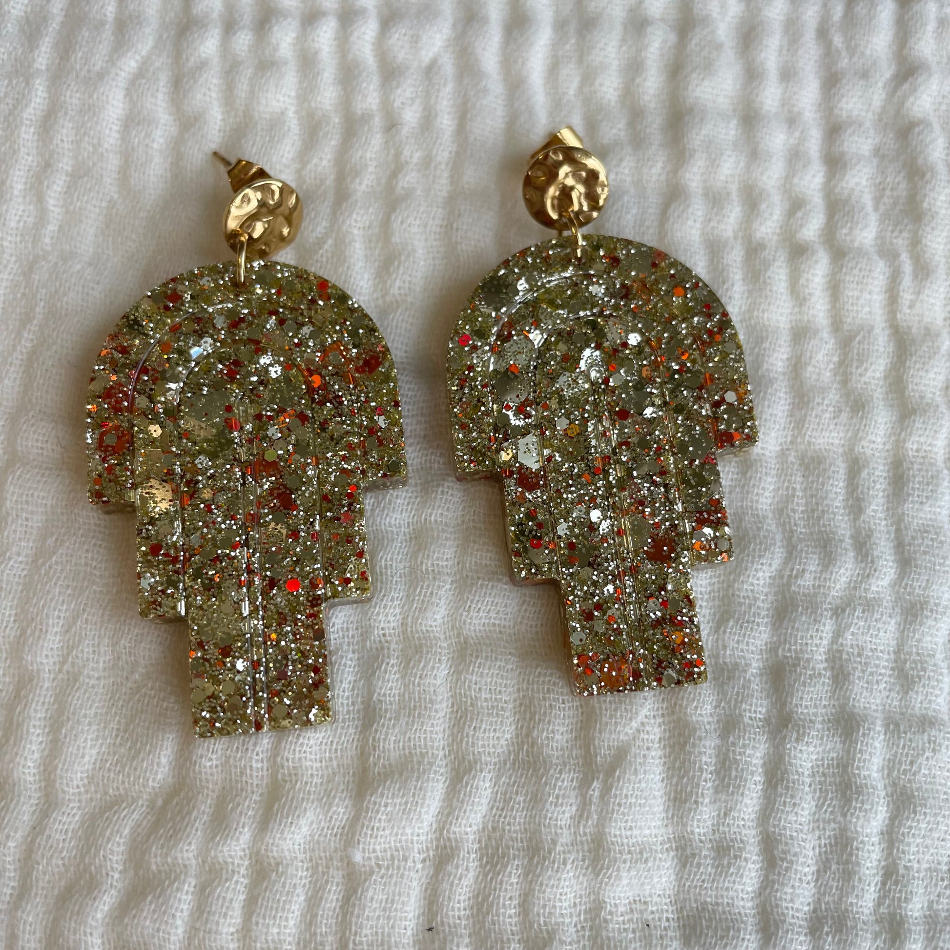 pendentif en résine et paillettes FAIT MAIN dans mon atelier.