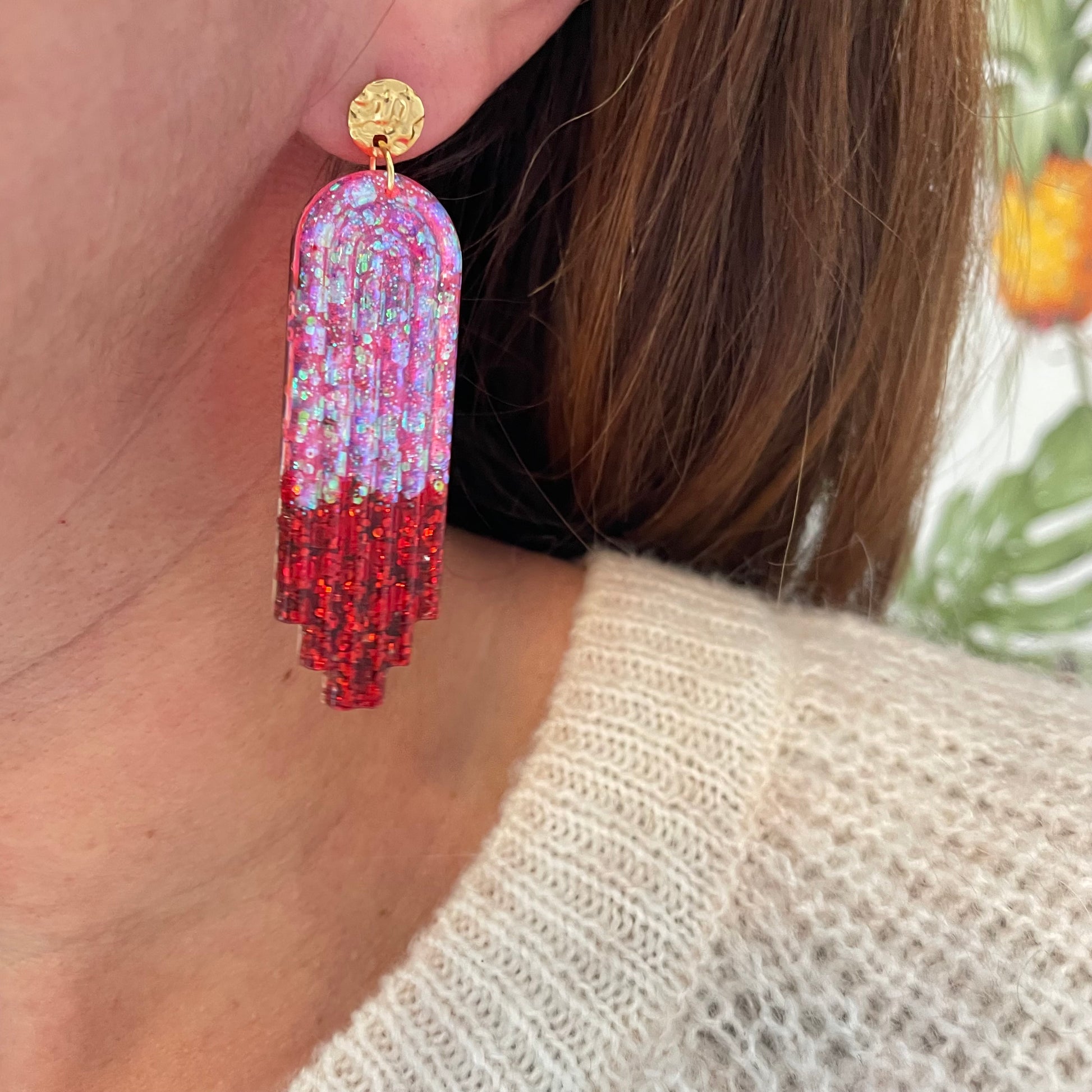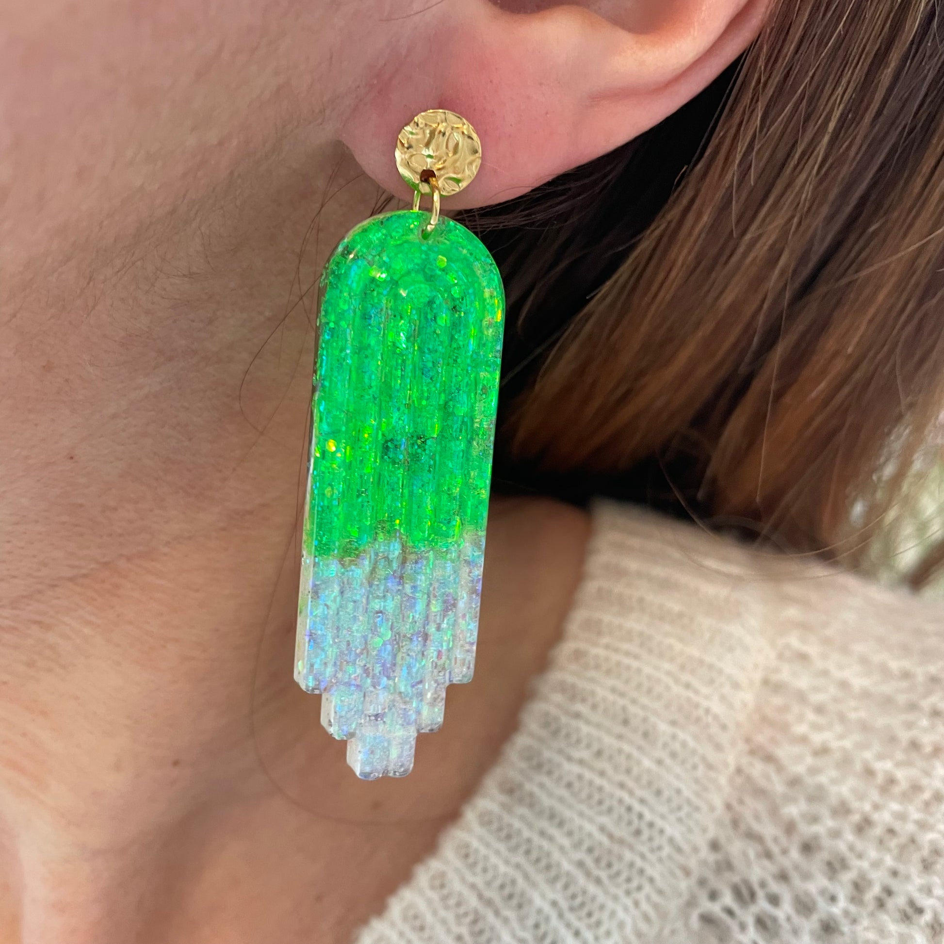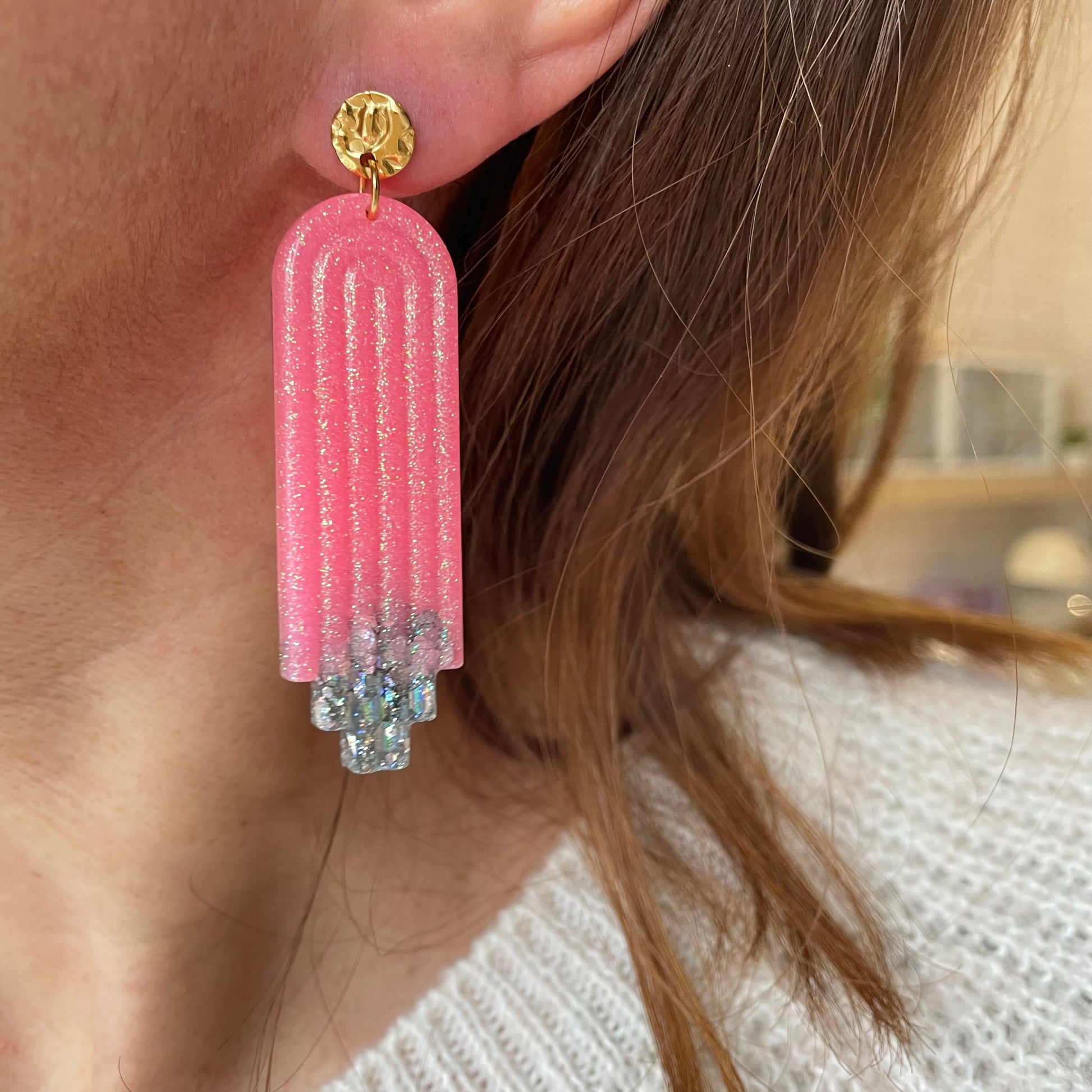 pendentif en résine et paillettes FAIT MAIN dans mon atelier.